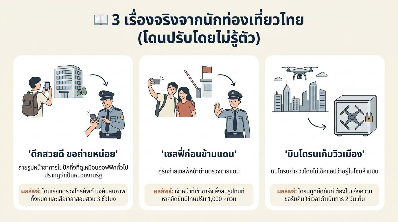 ⚠️ เคส จริง: นักท่องเที่ยวต่างชาติเคยถูกกักตัวหลายชั่วโมงเพียงเพราะถ่ายภาพ "ตึกรัฐบาล" ที่เข้าใจว่าเป็นแค่อาคารสำนักงาน