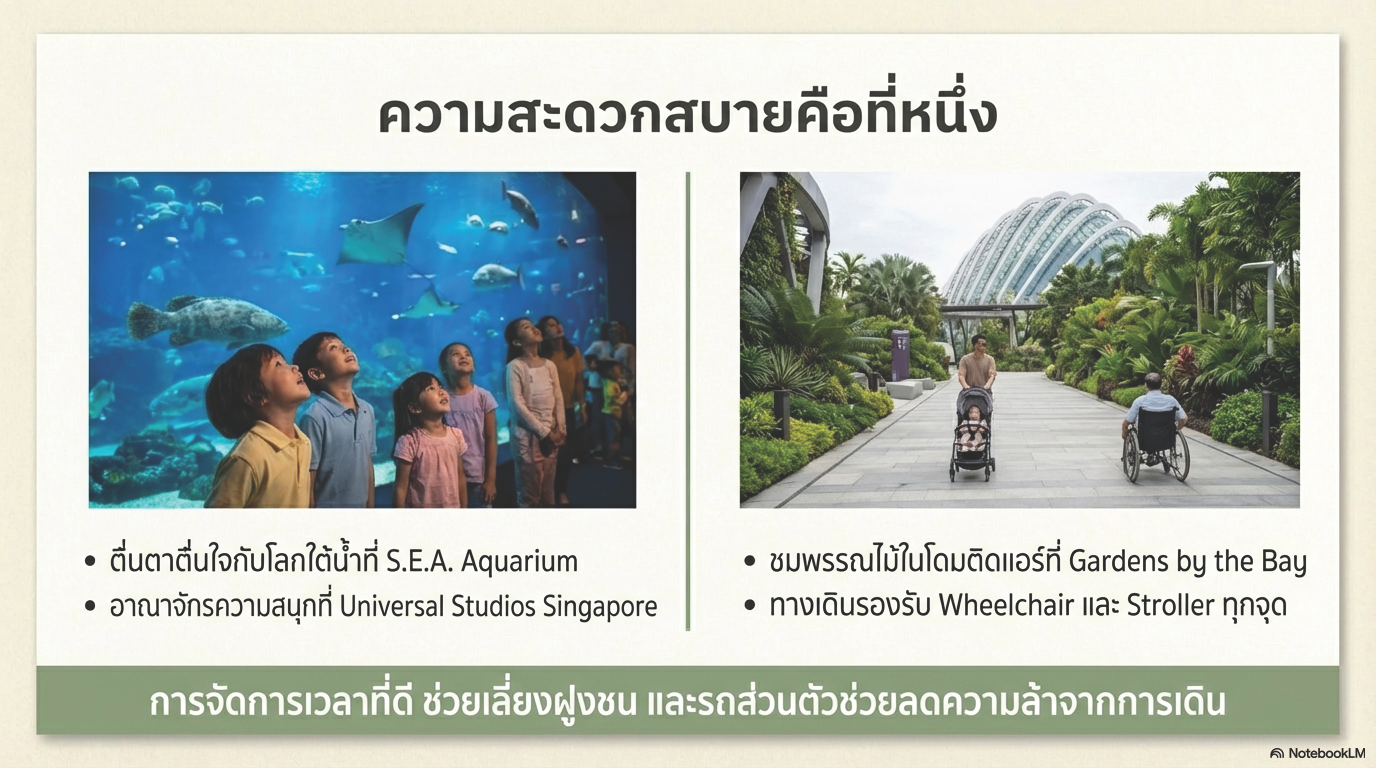 หากความสะดวกสบายคือโจทย์หลักของคุณ ทัวร์สิงคโปร์ คือคำตอบที่ถูกต้องที่สุดค่ะ สิงคโปร์เป็นประเทศที่ขึ้นชื่อเรื่องความสะอาด ความปลอดภัย และการออกแบบเมืองที่เป็น Universal Design คือไม่ว่าจะเป็นรถเข็นเด็ก (Stroller) หรือรถเข็นผู้สูงอายุ (Wheelchair) ก็สามารถเข้าถึงระบบขนส่งสาธารณะและสถานที่ท่องเที่ยวทุกแห่งได้อย่างง่ายดาย