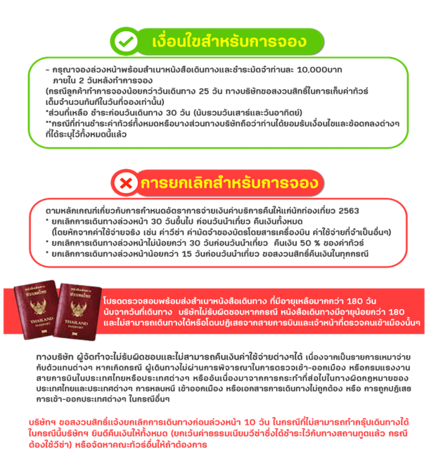 กรุณายืนยันการซื้อแพ็คเกจไม่น้อยกว่า 3 วันก่อนออกเดินทาง หากน้อยกว่าเวลาที่กำหนด